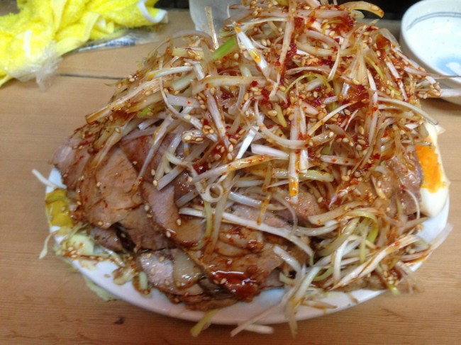野菜チョイ増し。辛揚げ。肉追加1枚。ネギ増し。紅ショウガ。