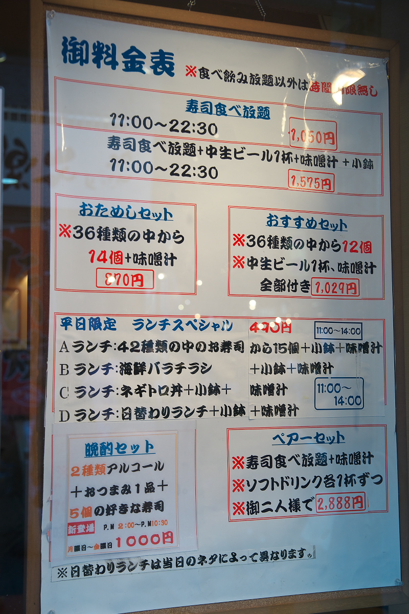 食べ放題の寿司としては破格の1050円ということで前々から気にはなっていたものの、クチコミを見ては尻込みする日々。しかし今回、上野公園で桜を見たこの”ついで”感を利用することでとうとう潜入に成功しました!
