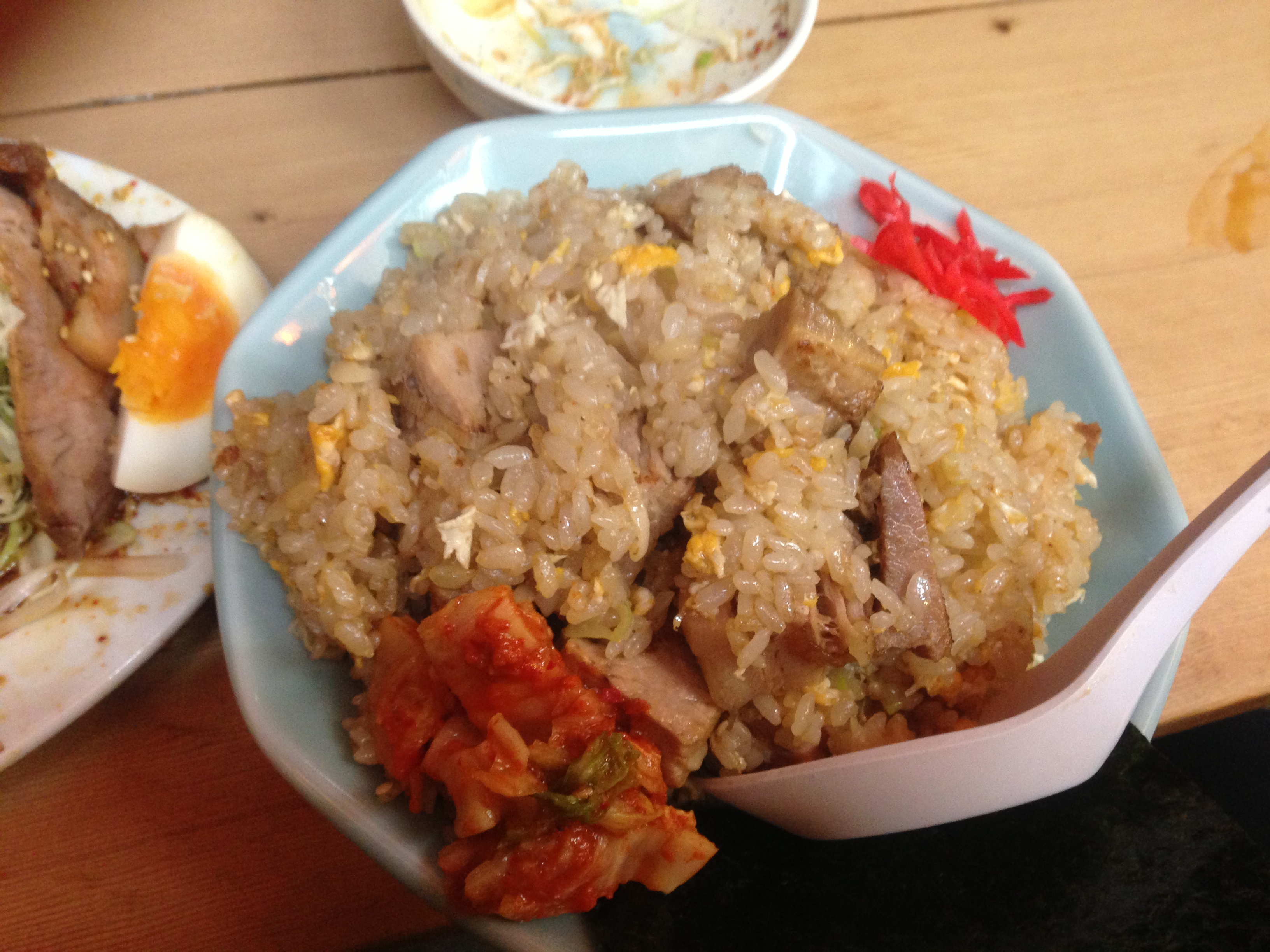 いわゆる普通のチャーハンに、キムチの付け合せ、なんだ、大したことないのに800円かよ。と、思うかもしれませんが。