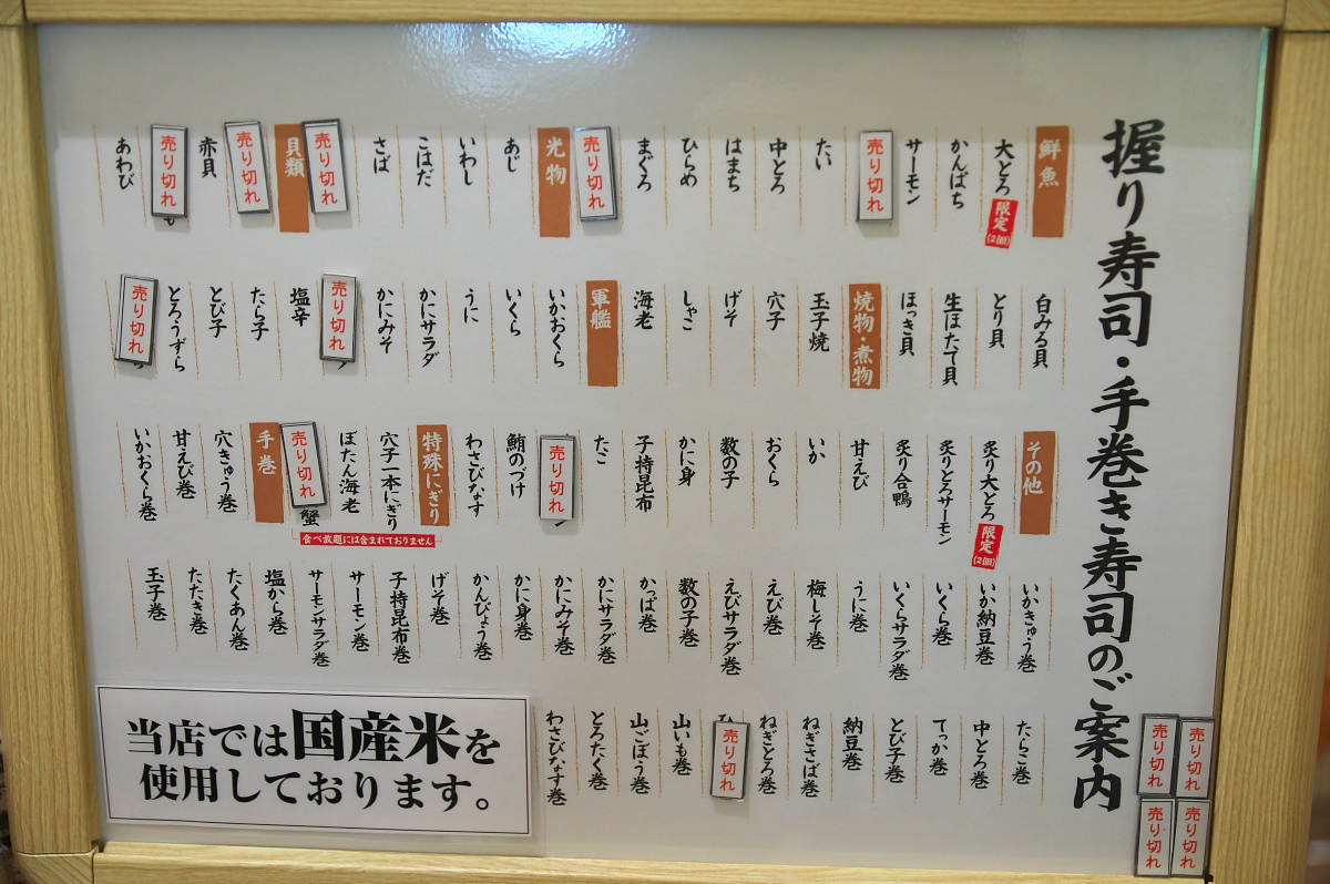 20時頃の入店でしたが売切ネタがチラホラと出ておりました。