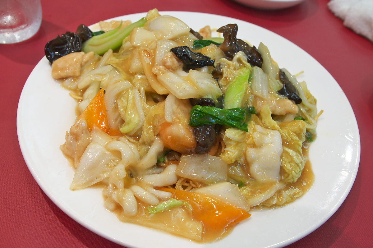 初めての中華屋では五目焼そばと決めているので私はそれを頼みましたが、味はその辺りの街の中華屋とそう変わらない感じ。
